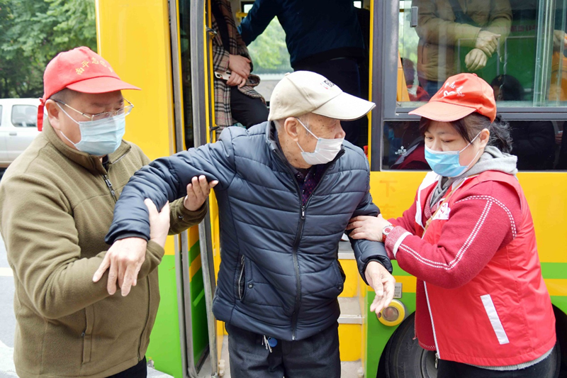 志愿者們幫助行動(dòng)不便的乘客下車 南孚公司供圖