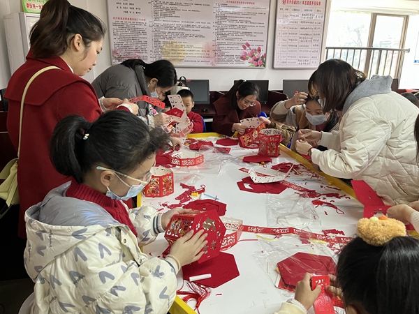 家長與小朋友共同制作燈籠。倉山區(qū)文明辦供圖