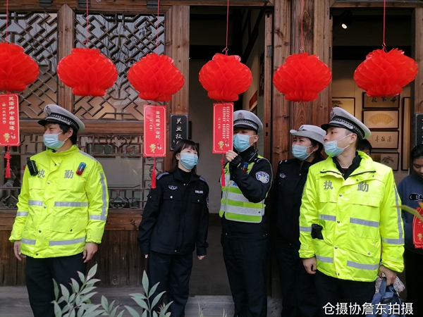 公安干警同志探討燈謎。倉山區(qū)攝影家協(xié)會(huì) 詹東供圖