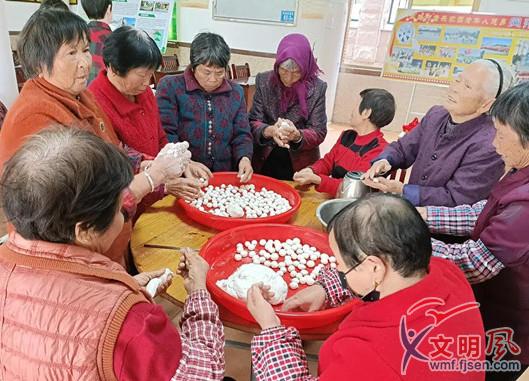 老人們開(kāi)心地動(dòng)手搓湯圓(翔安區(qū)委文明辦供圖)