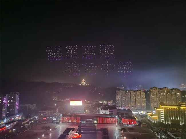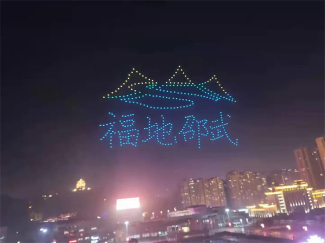 666架無人機以“福文化”及“邵武是個好地方”為主題,打造了一場“聲光電”交融的視聽盛宴 (劉建飛 劉靜 攝)
