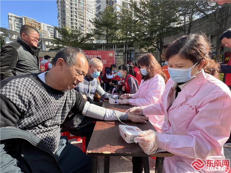 集美區(qū)婦幼保健院醫(yī)護志愿者為居民量血壓。東南網(wǎng)記者 李霖 攝