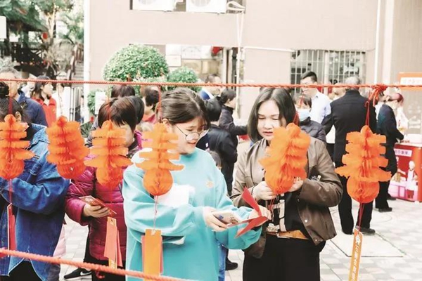 2月15日,悅港社區(qū)黨總支、悅港社區(qū)新時(shí)代文明實(shí)踐站攜手新橋街道新時(shí)代文明實(shí)踐所、石獅農(nóng)商行等單位,別出心裁地將垃圾分類相關(guān)知識(shí)寫進(jìn)燈謎,讓居民以“猜燈謎”形式了解垃圾分類知識(shí)?,F(xiàn)場(chǎng),百余個(gè)紅燈籠下粘著一張張事先準(zhǔn)備好的燈謎,居民三五成群討論、競(jìng)猜。伴隨著此起彼伏的搶答聲,大家一起度過了一個(gè)既長(zhǎng)知識(shí)又有趣味的元宵節(jié)。