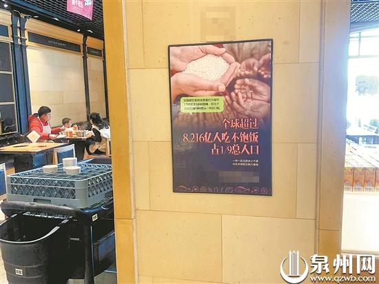 一家餐館在醒目位置開展愛惜糧食宣傳