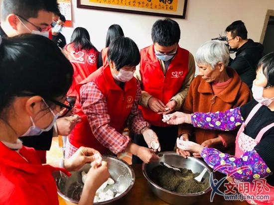 志愿者與老人一起包湯圓(翔安區(qū)委文明辦供圖)