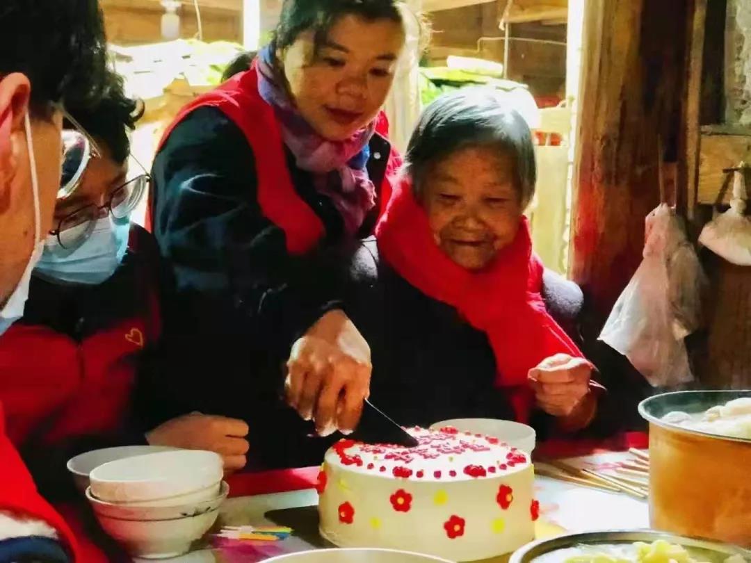 志愿者給江奶奶過生日。古田文明辦 供圖