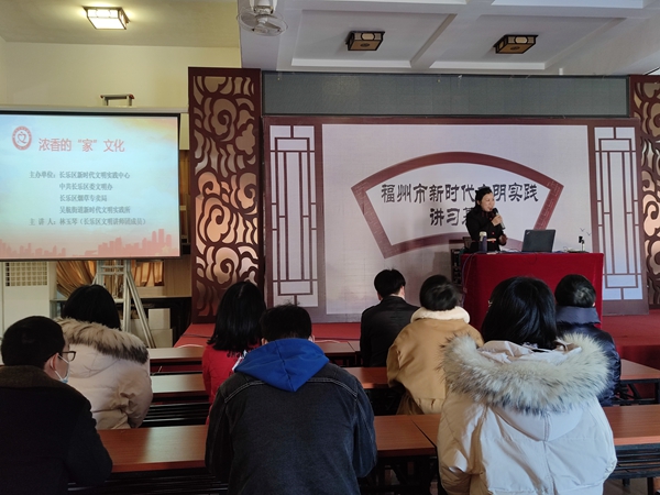 文明風2月25日訊 為加強社會主義精神文明建設,進一步弘揚優(yōu)良家風家訓,2月24日上午,新時代文明實踐講習活動在長樂區(qū)吳航街道東溪精舍舉辦,邀請了長樂區(qū)文明講師團成員林玉琴老師作“家”文化專題講座。本次活動由長樂區(qū)新時代文明實踐中心、區(qū)委文明辦、區(qū)煙草專賣局及吳航街道新時代文明實踐所主辦,區(qū)煙草專賣局30余名干部職工參加活動。