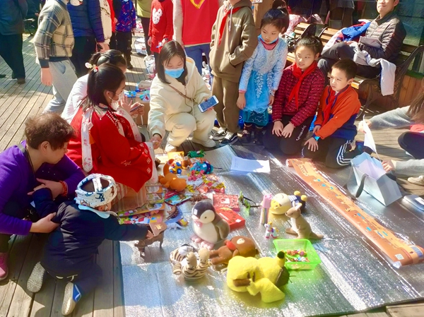 2月26日,鼓樓區(qū)建華社區(qū)則組織孩子們舉辦愛心義賣活動(dòng),并將義賣所得用于拗九節(jié)敬老?!白哌^路過不要錯(cuò)過,快來看快來買呀!”“滿十元可參與一次抽獎(jiǎng)……”活動(dòng)中,建華社區(qū)木棧道被布置成“愛心集市 點(diǎn)亮微光”跳蚤市場,社區(qū)小朋友們化身“小老板”,現(xiàn)場充滿了稚嫩的吆喝聲。義賣結(jié)束后,大家將收入用于購買拗九粥。小朋友們穿上紅馬甲,在工作人員帶領(lǐng)下,提著拗九粥上門探訪社區(qū)老人,表達(dá)自己孝老敬老之情。