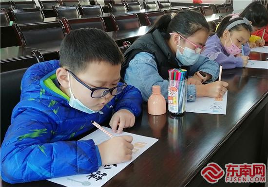 孩子們現(xiàn)場(chǎng)繪制《文明餐桌》主題手抄報(bào)(程金蘭 攝)