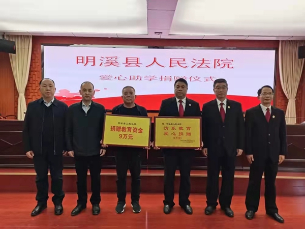 2月28日,明溪縣教育發(fā)展促進會在縣人民法院六樓會議室舉行“情系教育、助力振興”愛心助學捐贈儀式。院長寧金德代表法院現(xiàn)場向明溪縣教育發(fā)展促進會捐贈教育資金9萬元,院領(lǐng)導帶頭捐款,全院干部也積極奉獻自己的一片愛心。會后,全縣干部職工群眾積極參與愛心助學捐贈活動,截至目前,合計捐款額達500萬元,明溪縣形成了捐資助學、興教重教的濃厚氛圍?!百浫嗣倒?,手有余香”,愛心助學,傳遞的是愛心,營造的是希望,收獲的是美德。