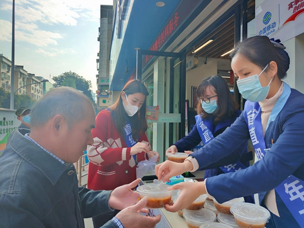 在營業(yè)廳現(xiàn)場,工作人員為群眾送上拗九粥,傳遞滿滿的愛心與祝福。社區(qū)的老人及鄰里街坊紛紛表示,移動公司這實(shí)事辦得暖人心!