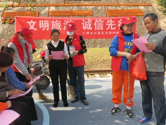 沙縣區(qū)文旅局學雷鋒志愿小分隊向群眾發(fā)放《文明旅游 誠信先行》倡議書