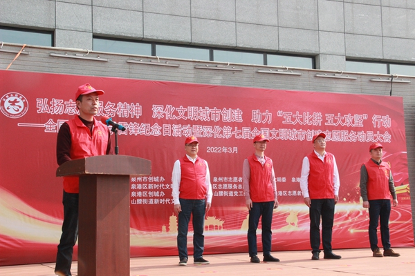 文明風(fēng)3月3日訊 3日上午,“弘揚(yáng)志愿服務(wù)精神 深化文明城市創(chuàng)建 助力‘五大比拼 五大攻堅(jiān)’行動”——全國第59個學(xué)雷鋒紀(jì)念日活動暨深化第七屆全國文明城市創(chuàng)建志愿服務(wù)動員大會在泉港新時(shí)代文明實(shí)踐中心后廣場舉行。