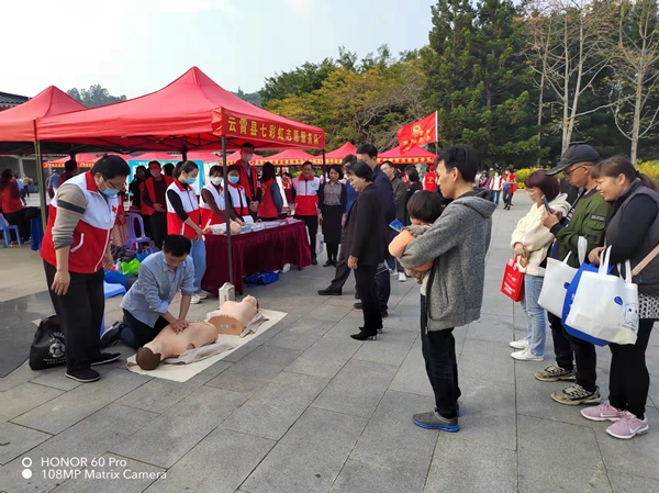 志愿者現(xiàn)場(chǎng)開展應(yīng)急救護(hù)知識(shí)普及