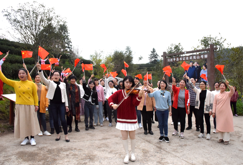 姐妹們來到星村村燕子窠生態(tài)茶園,重走習近平總書記武夷山考察之路,重溫習近平總書記殷切囑托,以快閃《我和我的祖國》、舞蹈《武夷茶舞》,共同表達感恩之情,祝福祖國繁榮昌盛。