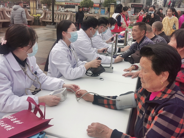 志愿者為群眾開(kāi)展義診活動(dòng)。