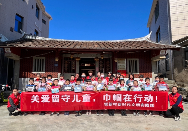 巾幗志愿者為留守兒童送溫暖。供圖:長(zhǎng)泰區(qū)坂里鄉(xiāng)