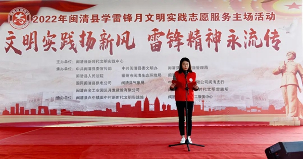 志愿者代表閩清縣愛(ài)之翼社工服務(wù)中心劉晨露上臺(tái)宣讀倡議書(shū)
