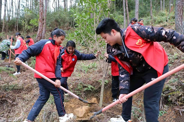 少先隊(duì)員和志愿者合力種樹(周寧縣融媒體中心供圖)