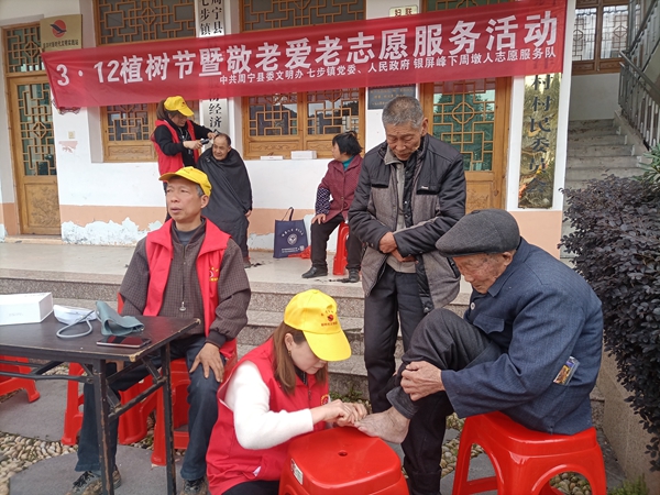 同時(shí)周寧縣新時(shí)代文明實(shí)踐志愿服務(wù)總隊(duì)組織志愿者在后洋村新時(shí)代文明實(shí)踐站廣場(chǎng)開展“3·12植樹節(jié)暨敬老愛老”志愿服務(wù)活動(dòng)。活動(dòng)現(xiàn)場(chǎng),志愿者們?yōu)榭粘怖先肆垦獕?、義務(wù)理發(fā)、洗腳、剪指甲、貼膏藥等,細(xì)心的服務(wù)讓老人們臉上露出了笑容。