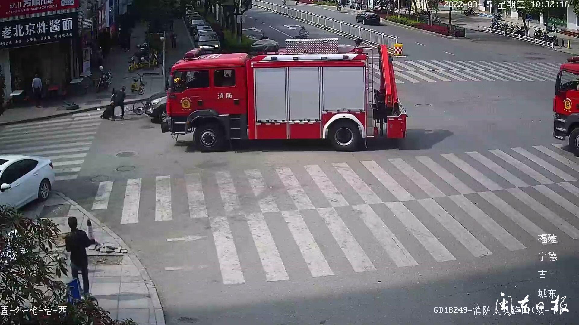 3月15日上午,古田縣消防救援大隊在歸隊途中發(fā)現(xiàn)一部小車與一騎自行車的老人發(fā)生碰撞,老人從車上摔下,頭部受傷。