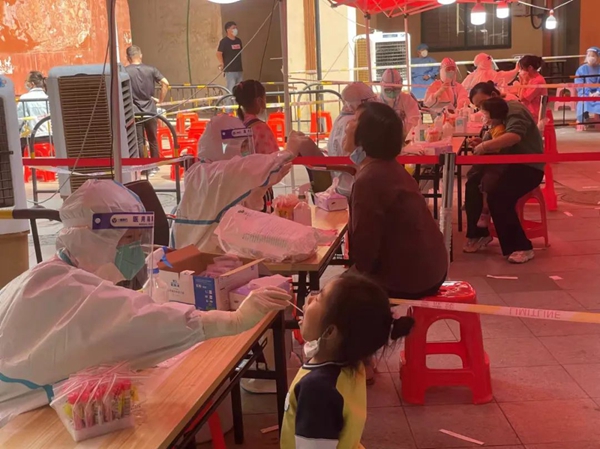 各單位干部職工在各個核酸采集點不舍晝夜的進(jìn)行采樣工作