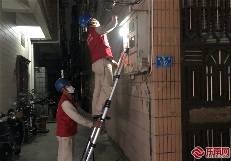 僑英供電所“雙滿意”共產(chǎn)黨員服務(wù)隊(duì)志愿者為防疫卡點(diǎn)排查電源故障。(集美·誠(chéng)毅志愿者聯(lián)盟供圖)