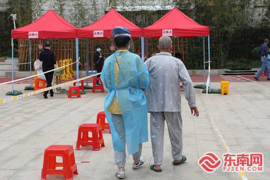 傅章妹陪同轄區(qū)老人進(jìn)行核酸采樣。 吳秋瑜 供圖