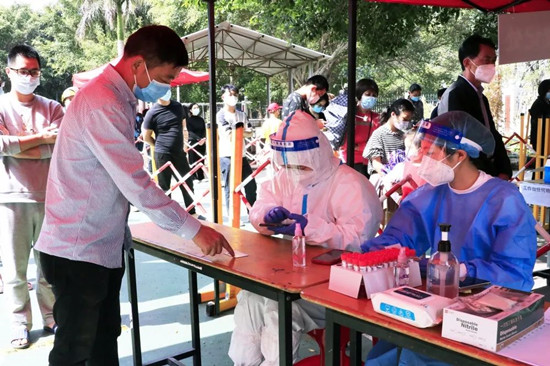 采樣志愿者為居民進(jìn)行采樣工作。 洛江區(qū)委文明辦 供圖