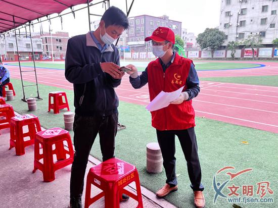 志愿者幫助群眾做好信息登記(翔安區(qū)委文明辦供圖)