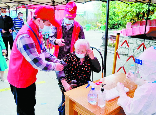 下沉干部在基層嚴(yán)格落實(shí)疫情防控各項(xiàng)要求。(同安區(qū)供圖)