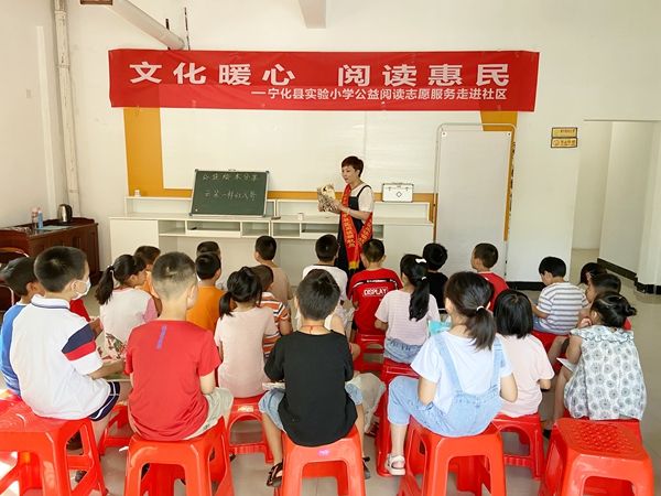 寧化縣新時(shí)代教育服務(wù)隊(duì)志愿者進(jìn)北山社區(qū)開展暑期繪本閱讀分享