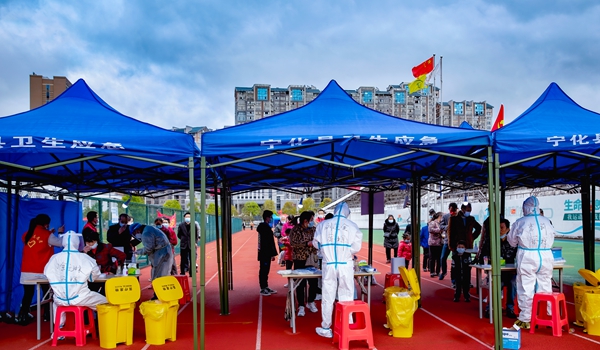 寧化縣新時(shí)代文明實(shí)踐志愿者助力核酸檢測(cè)(李文金攝)
