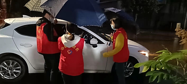 雨夜,尤溪口鎮(zhèn)的志愿者守在疫情防控一線