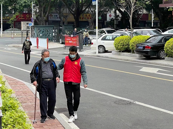檢察院機關(guān)志愿者攙扶來核酸檢測的老人。(鼓樓檢察院供圖)