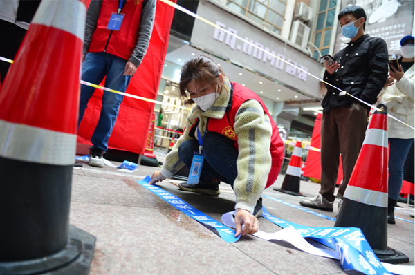 “二維碼,準備好”“來排隊,隔一米”“聽安排,守秩序”等一張張生動有趣的指示手舉提示牌,讓采集現(xiàn)場更暖心、更有序、更高效,前來排隊的居民紛紛點贊。