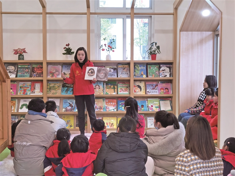 志愿者引導(dǎo)家長(zhǎng)進(jìn)行親子閱讀。胡寶平 攝