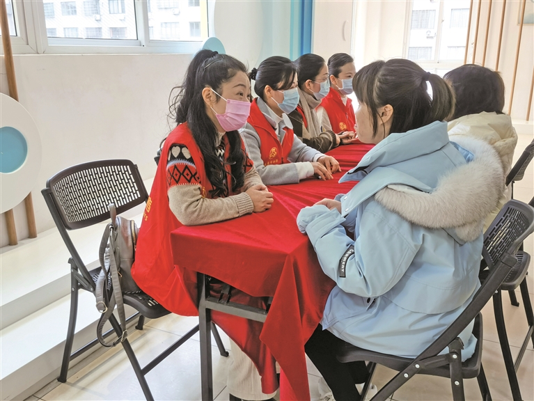 志愿者面對(duì)面為家長(zhǎng)答疑解惑。胡寶平 攝