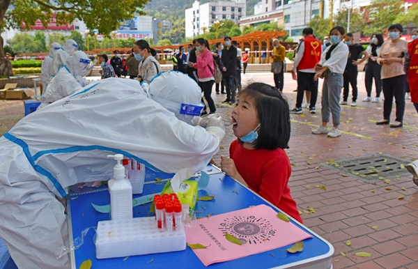 現(xiàn)場核酸采樣點新時代文明實踐志愿服務(wù)隊在行動