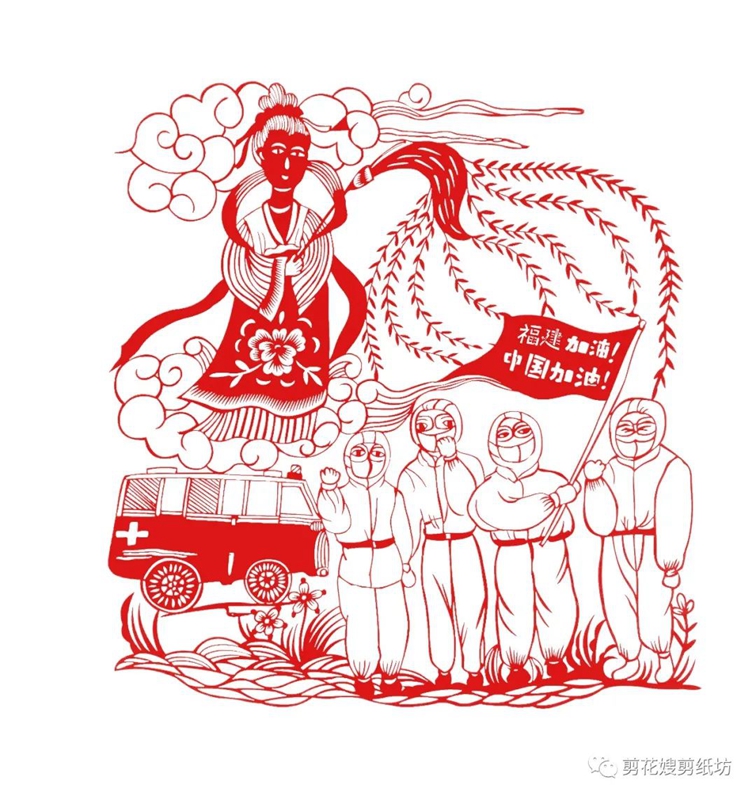 文明風(fēng)4月6日訊 4月5日,國家級非物質(zhì)文化遺產(chǎn)浦城剪紙技藝省級傳承人周冬梅以“中國加油”“福建加油”為題材創(chuàng)作了一幅《福建戰(zhàn)“疫”》剪紙作品,通過剪紙作品提振人民群眾抗疫信心,展現(xiàn)非遺力量。