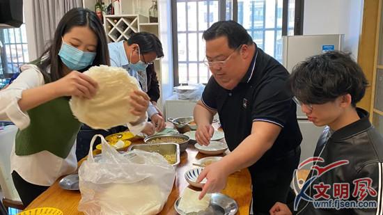 兩岸同胞們一起包薄餅、話家常(翔安區(qū)委文明辦供圖)