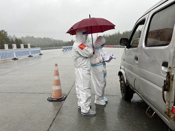 黨員志愿者在高速路口排查來往車輛