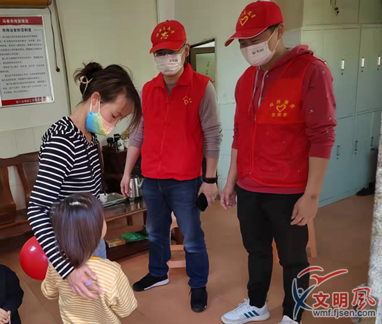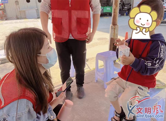 志愿者在安撫小男孩(翔安區(qū)委文明辦供圖)