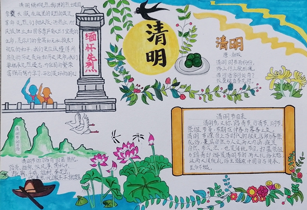 春風(fēng)送花表哀思,手握彩筆寄深情。為緬懷革命先烈,弘揚(yáng)愛(ài)國(guó)主義精神,江口中心小學(xué)組織少先隊(duì)員們精心制作了以清明節(jié)為主題的繪畫(huà)、手抄報(bào)、硬筆書(shū)法作品。少先隊(duì)員們?cè)谥谱鞯倪^(guò)程中了解清明節(jié)的來(lái)歷習(xí)俗,學(xué)習(xí)流傳至今的時(shí)節(jié)佳句,感悟老一輩無(wú)產(chǎn)階級(jí)革命家堅(jiān)韌頑強(qiáng)、樂(lè)觀豪邁的革命精神和紅船情懷,以文藝作品為媒介弘揚(yáng)傳統(tǒng)文化,致敬革命先烈。(涵江區(qū)委文明辦供稿 林雅星 陳鑫)