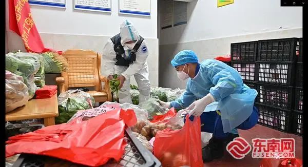 安溪縣藍(lán)天救援中心志愿者為群眾送來(lái)免費(fèi)的新鮮果蔬。受訪者 供圖