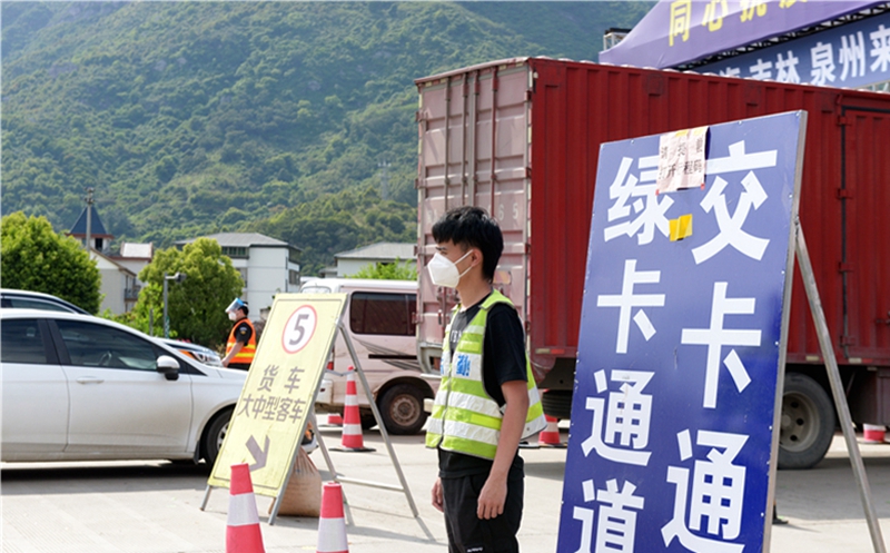 4月14日下午,記者在福州(祥謙)高速出口看到,身穿工作服、頭戴防護(hù)面罩的志愿者們頂著烈日對車輛逐一進(jìn)行來處查驗,并分發(fā)相應(yīng)的顏色卡片。