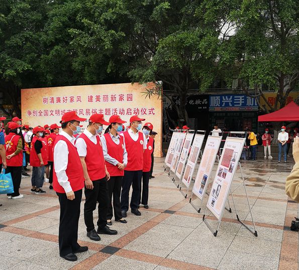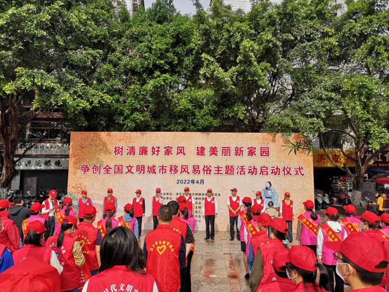 文明風(fēng)4月18日訊 為弘揚(yáng)社會(huì)主義核心價(jià)值觀,引導(dǎo)漳平市市民爭(zhēng)做移風(fēng)易俗的倡導(dǎo)者和實(shí)踐者,助推移風(fēng)易俗,4月15日,中共漳平市委文明辦、漳平市紀(jì)委監(jiān)委、市直機(jī)關(guān)黨工委、市婦聯(lián)、漳平市融媒體中心在市政府門(mén)前廣場(chǎng)舉行聯(lián)合開(kāi)展?fàn)巹?chuàng)全國(guó)文明城市“樹(shù)清廉好家風(fēng)·建美麗新家園”移風(fēng)易俗主題活動(dòng)啟動(dòng)儀式。漳平市領(lǐng)導(dǎo)王光志、朱彩泰、吳美珍、廖國(guó)聯(lián)、李月娥,市直各黨委(黨工委)干部及最美家庭代表、志愿者參加活動(dòng)。