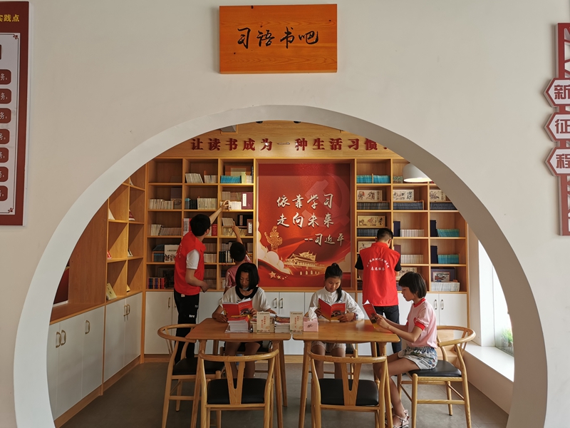 寧化縣湖村鎮(zhèn)新時(shí)代文明實(shí)踐所志愿者在實(shí)踐點(diǎn)習(xí)語書吧里為讀者提供借閱、宣傳等志愿服務(wù)