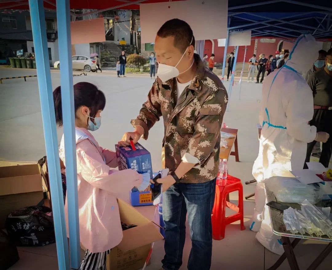 在核酸檢測(cè)工作中,群眾的支持配合為筑牢疫情防控屏障注入了無(wú)窮動(dòng)力。在三都鎮(zhèn),有為一線工作者送去暖心牛奶的稚童、有主動(dòng)加入“大白”隊(duì)伍的大學(xué)生志愿者、有“戰(zhàn)疫”不缺席的百歲老人,也有退休在家協(xié)助社區(qū)疫情防控的老黨員。這些暖心“疫”刻,讓奮戰(zhàn)一線的工作人員收獲無(wú)數(shù)感動(dòng)。