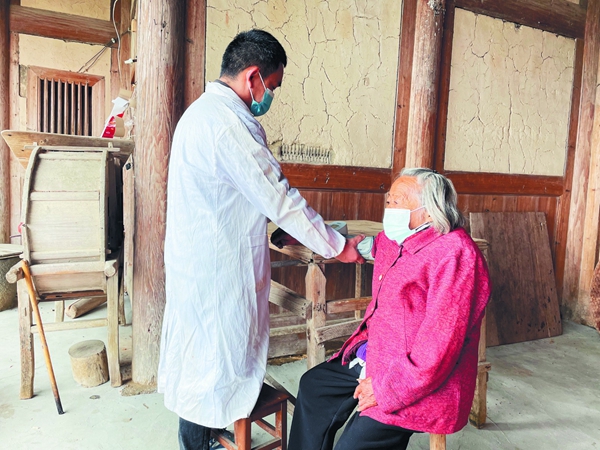 “陳阿姨,您這血壓又高了起來,是不是最近吃的菜又放了很多鹽了?鹽一定要少吃,血壓才能控制住。”“最近睡得好嗎?一般幾點睡的?睡眠質(zhì)量不好也是容易引起高血壓的?!薄?月7日,賴其樹一邊幫陳阿姨量血壓,一邊叮囑道。他口中的陳阿姨是格中村已90歲高齡的獨居老人陳下,一提到賴其樹,她就贊不絕口:“其樹是個很好的醫(yī)生,他來格中5年,就‘照顧’了我5年,每周都會來我家里給我量血壓、送藥、檢查身體,他特別細(xì)心,對我們老人家也很有耐心?!?。